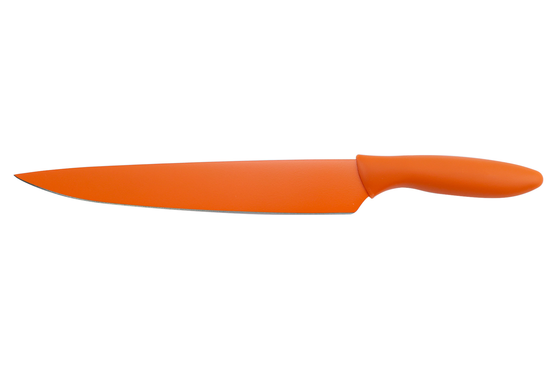 Lame de 23 cm en acier inox recouvert d'une résine orange fluorée anti-adhérente.